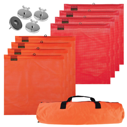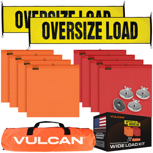 VULCAN Oversize Load Banners, Multi-Color Flags and Magnets Kit - Includes 2 Stretch Cord Oversize Load Banners, 4 Magnets, 4 Red Flags, 4 Orange Flags, and A High-Viz Vented Storage Bag
