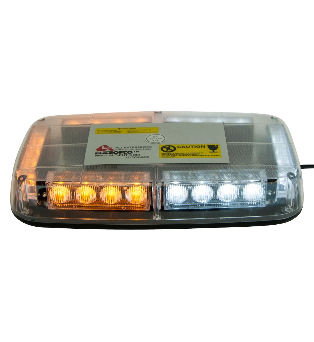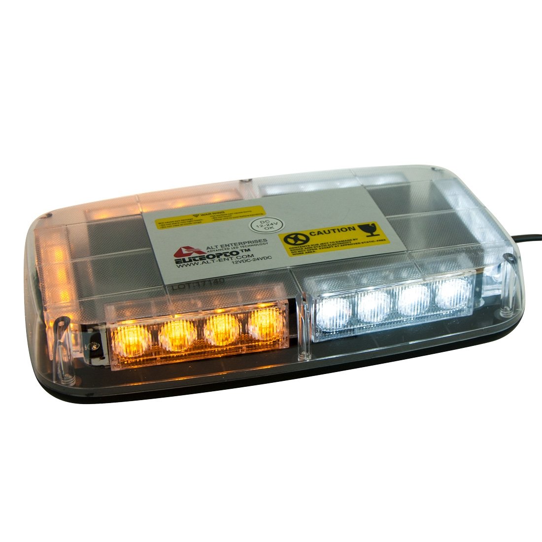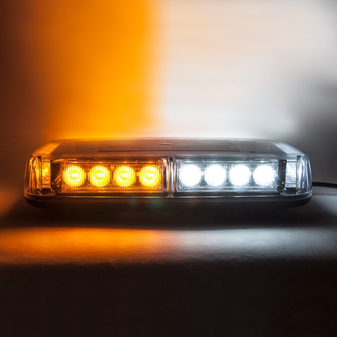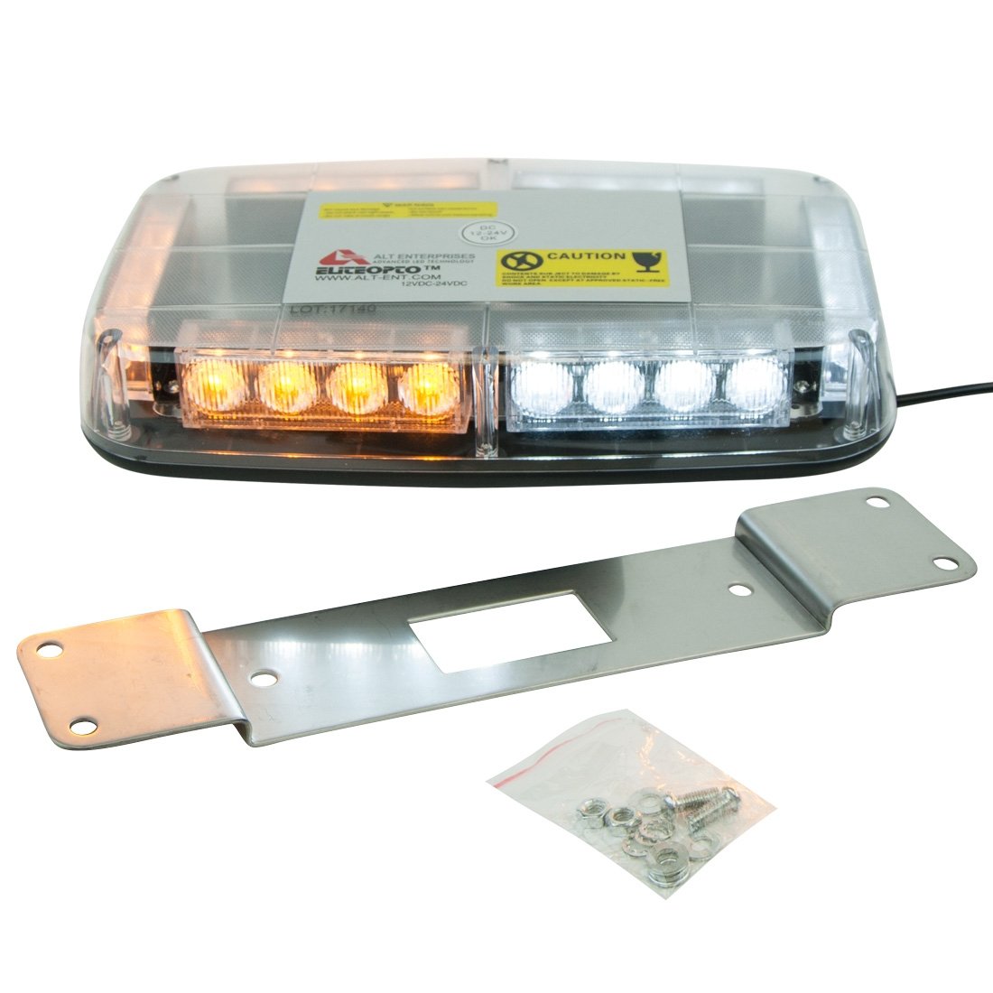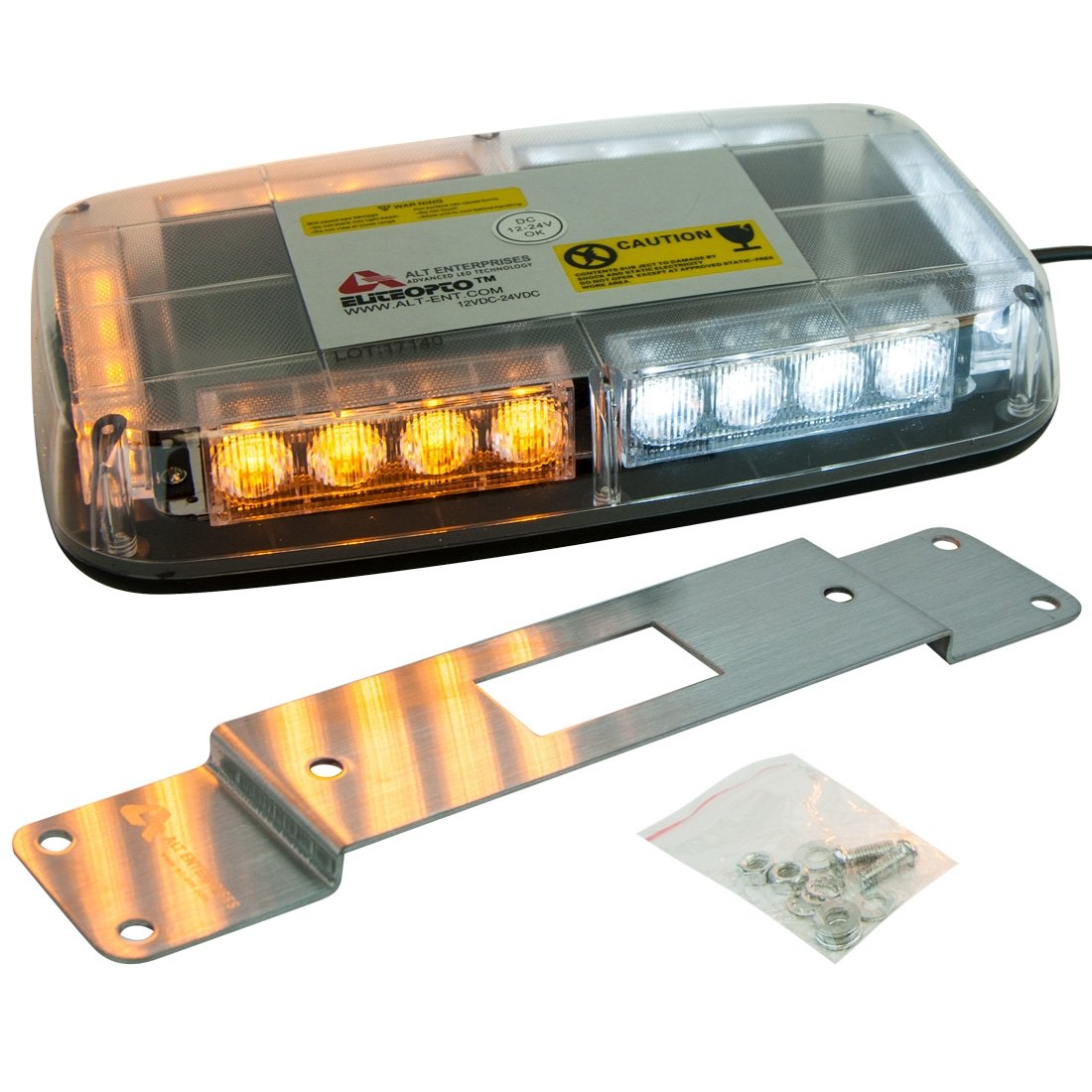 - SPECIFICATIONS - Amber and white LEDs, Operating voltage: 12V - 24 V DC, Measures 10.87" L x 6.41" W x 1.97" H, SAE Class 1, 5-year manufacturer's warranty included.