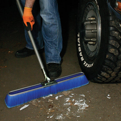 Bruske Brushes have been the industry standard for the past 29 years. These brushes combine unmatched quality and innovative features with an affordable price. All brushes include a sturdy 1" x 60" bolt-on steel handle that is powder coated for superior corrosion resistance. The fibers in the head are the highest quality and have been refined from years of research. This polystyrene fill will not shed and is lightweight to save wear and tear on your back. It is chemical resistant and is designed for long lasting durability. Bruske brushes are color coded for easy identification and are available in 17" and 23" widths. The brown fibers are coarse, perfect for roadside and outdoor clean-up. The black fibers are medium, great for sweeping out garages and driveways. Choose the blue fine bristles for sweeping on painted or sealed floors and smooth concrete. All models are appropriate for the clean-up of most common garage related spills.