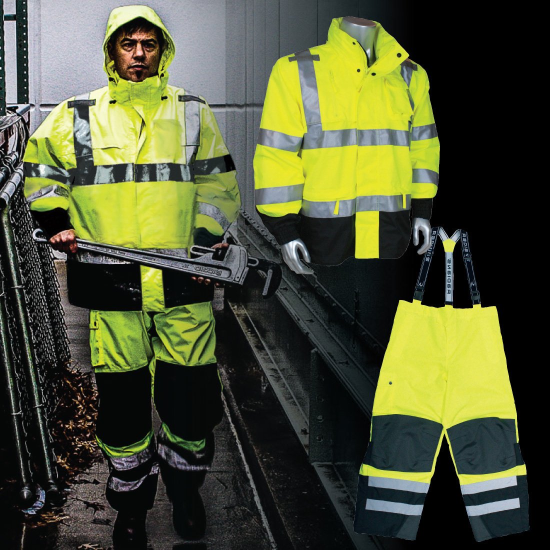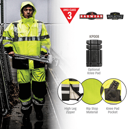- Jacket is ANSI Class 3 compliant, pants are Class E compliant