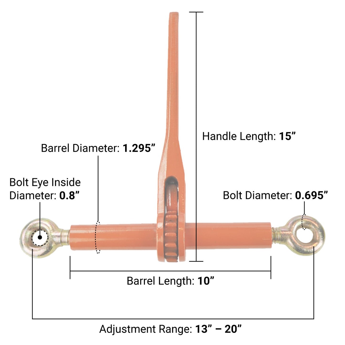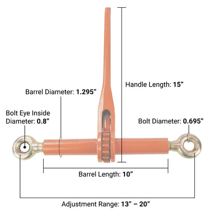 • INDUSTRIAL STRENGTH CONSTRUCTION - The heavy duty forged handle, barrel, take-up screws, and eye bolts are intended to stand up to rigorous field use and harsh weather conditions. Baked on powder coating and zinc-dichromate plating provide maximum durability and reliability.
