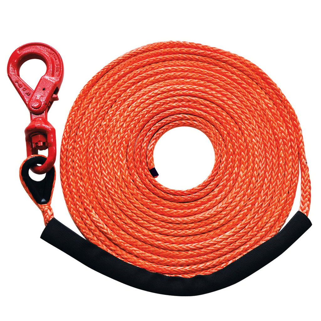 VULCAN Dyneema Synthetic Rope Winch Line - Locking Swivel Hook - 3/8 Inch x 50 Foot - Orange - 16,400 Pound MBS - 4,100 Pound Safe Working Load