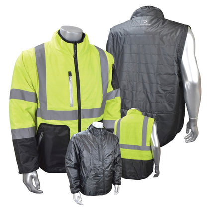 - Zippered sleeves easily convert the coat to a class 2 vest