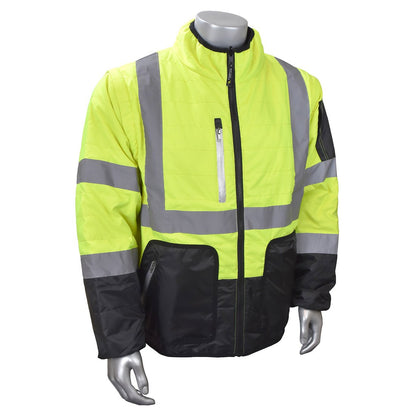 - Zippered sleeves easily convert the coat to a class 2 vest