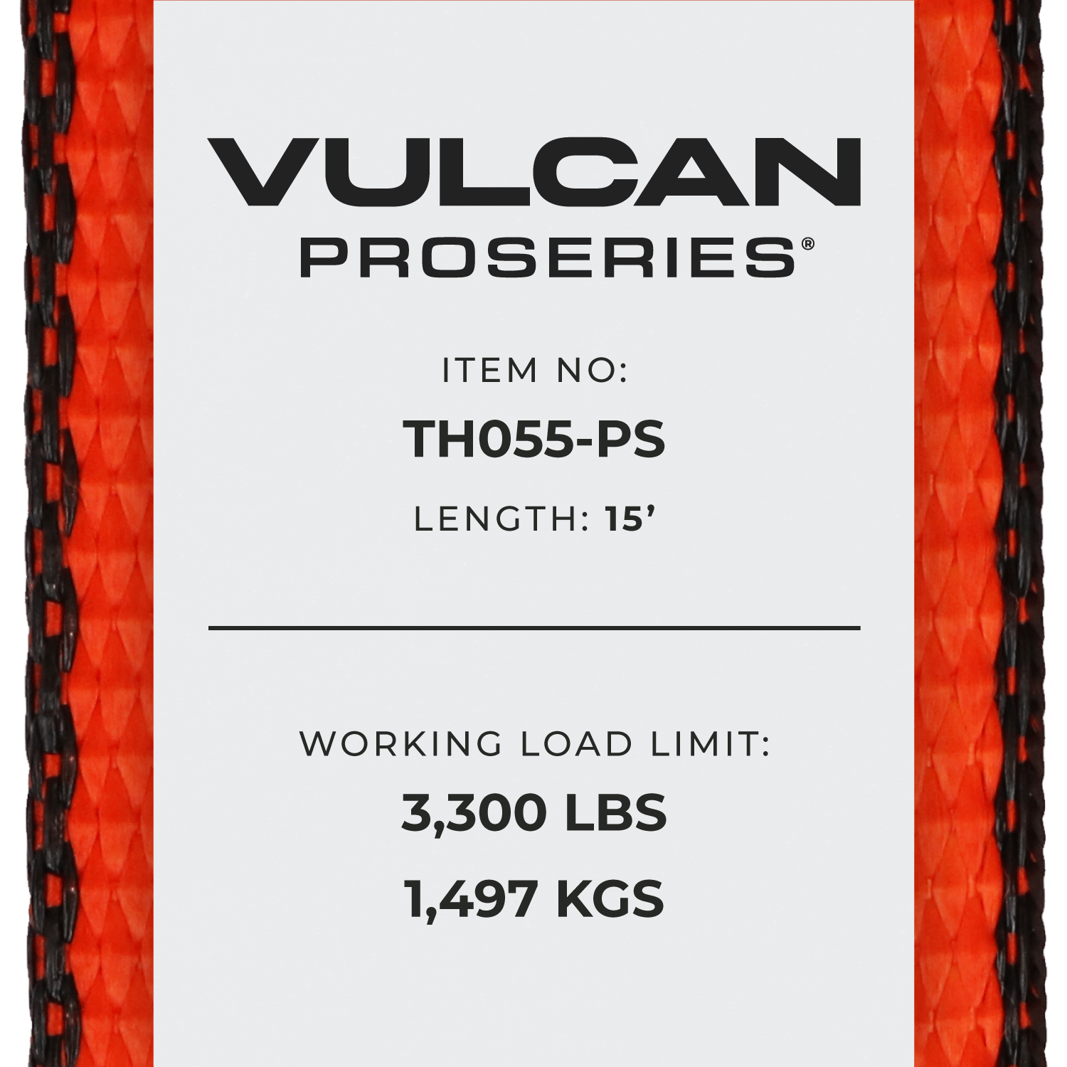 - UNIQUE PRO SERIES WEBBING LASTS LONGER - Super-strong, proprietary, optic orange PROSeries webbing is 67% more abrasion-resistant and 30% more cut-resistant than standard webbing. The edges are treated with ultra-durable plastic yarns for maximum durability and extra-long service life. The webbing is also extra thick, with a 15,000 lbs. breaking strength, significantly higher than most tie down webbing. You can only get this webbing on VULCAN PROSeries assemblies. Do not be fooled by imitators.