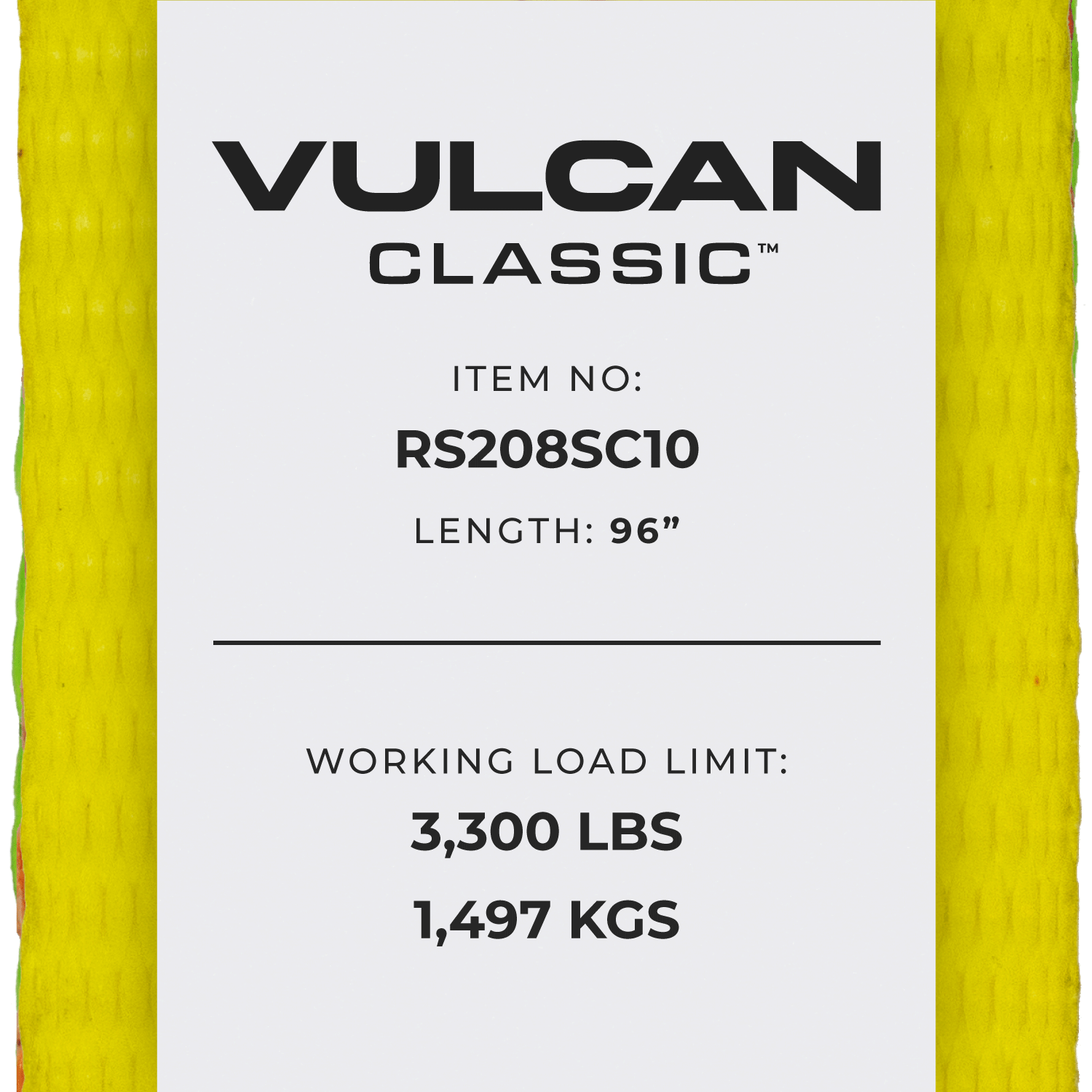 - Heavy duty 2'' yellow webbing is cut and UV resistant, and the ratchet buckle has a 5/16'' x 12'' chain tail that fits into the t-slot, banjo eye or grab hook on your trailer deck