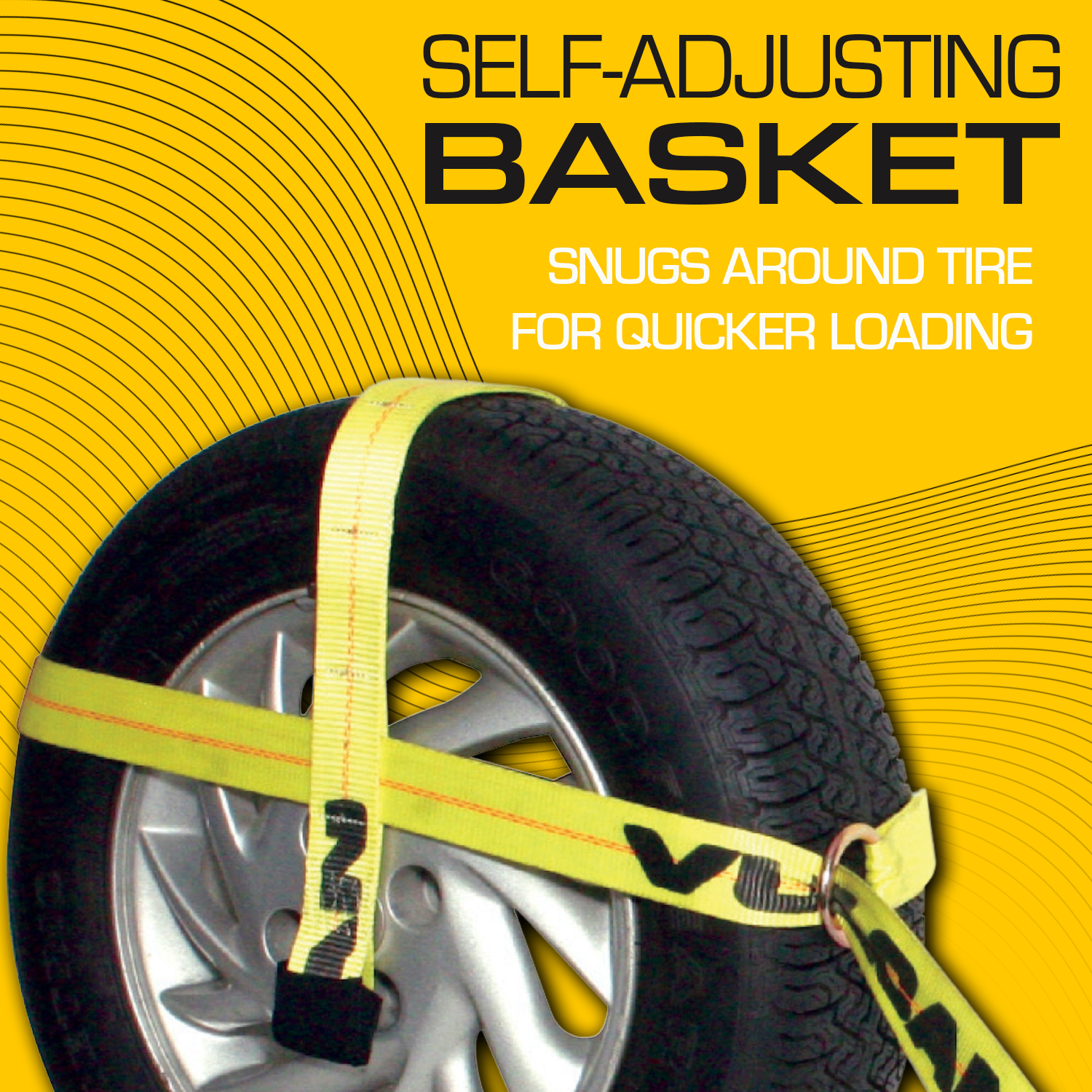 - Self-Adjusting basket snugs around the tire for quick loading
