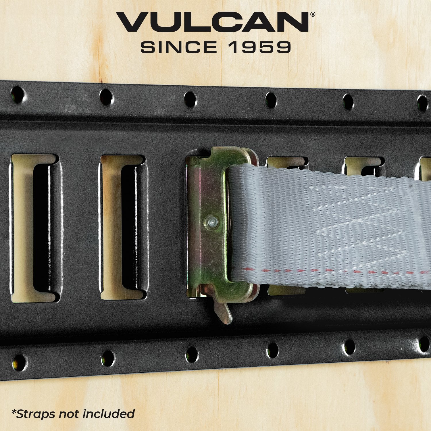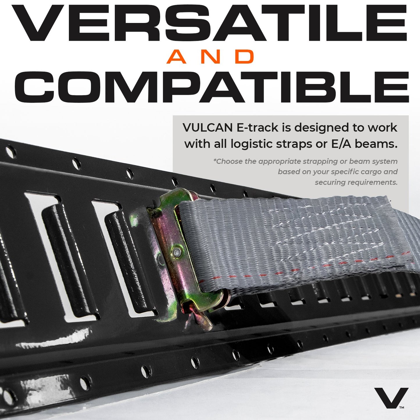 - SAFE AND COMPLIANT - This e-track meets or exceeds Department of Transportation (DOT) regulations. VULCAN E-Track complies with safety standards and regulations set by transportation authorities. You will be compliant for any roadside inspection, and you can work with confidence using Vulcan products - a name you can trust.