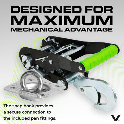 - SPECIAL CONSTRUCTION FOR ADDED SAFETY AND COMFORT - The wide ratchet handles deliver a superior grip and comfort for easy use even when wearing gloves. The pan fittings fold flat to store safely in your trailer deck, reducing tripping hazards. The webbing is light weight and easy to handle, yet exceptionally strong and durable.