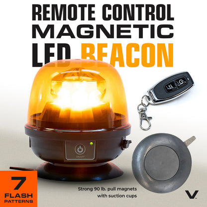 - Beacon includes 7 eye-catching flash patterns, with long remote control range of 150 feet for easy operation