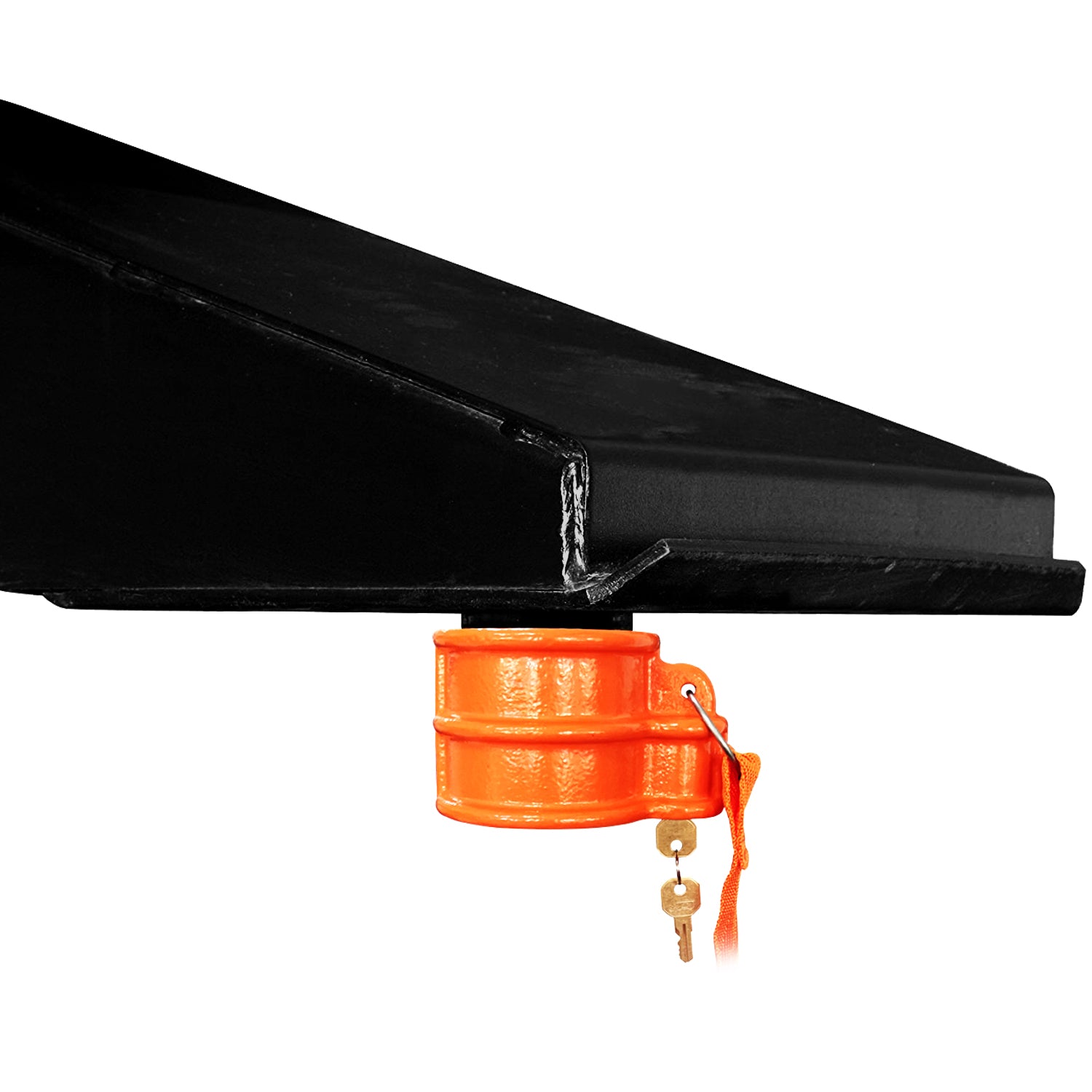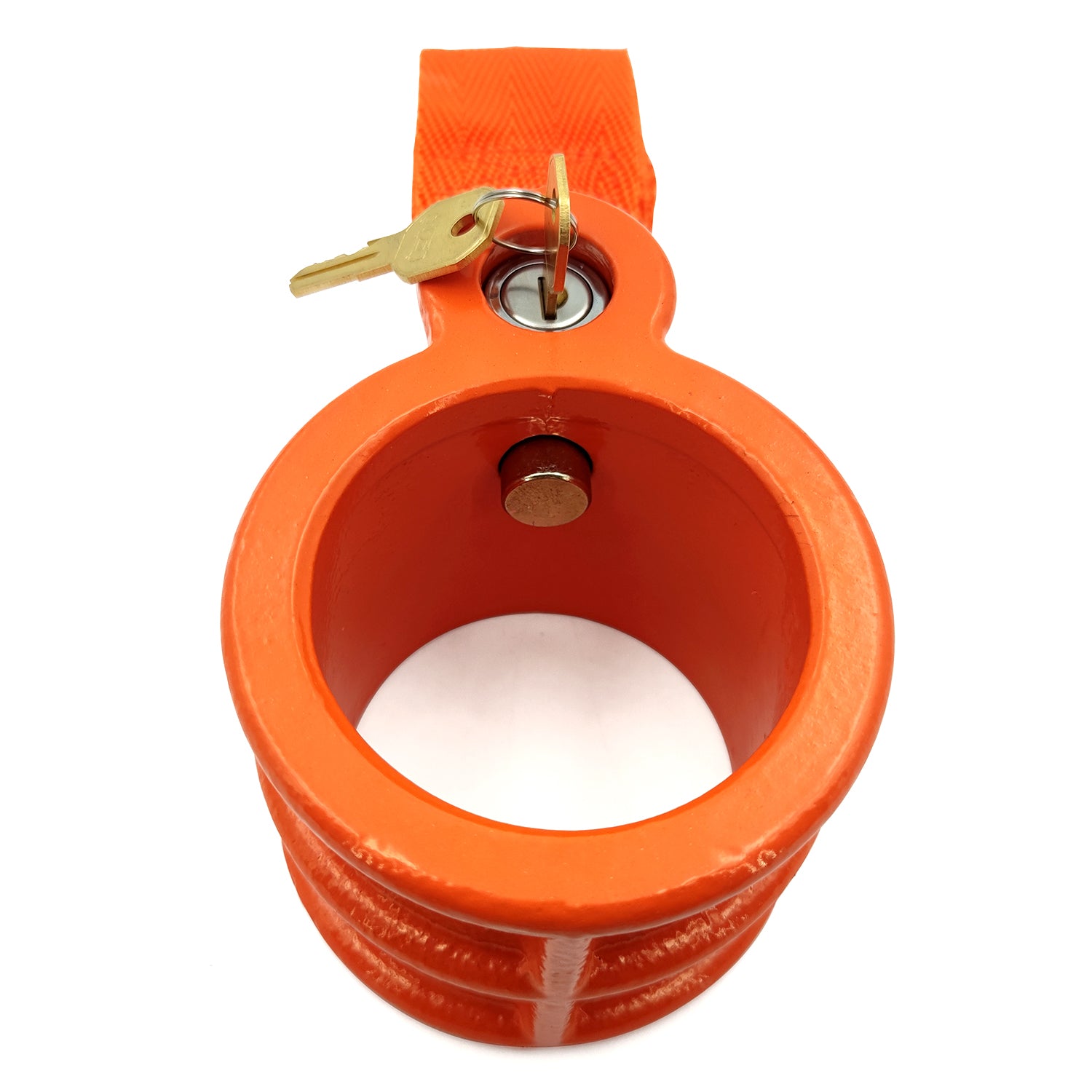 - EXTREMELY DURABLE - The heavy duty forged steel cuff and lock cylinder have a bright orange powder coat finish for easy identification and excellent resistance to the elements. This lock is designed to last for years and years and can be moved from trailer to trailer depending on your security needs.