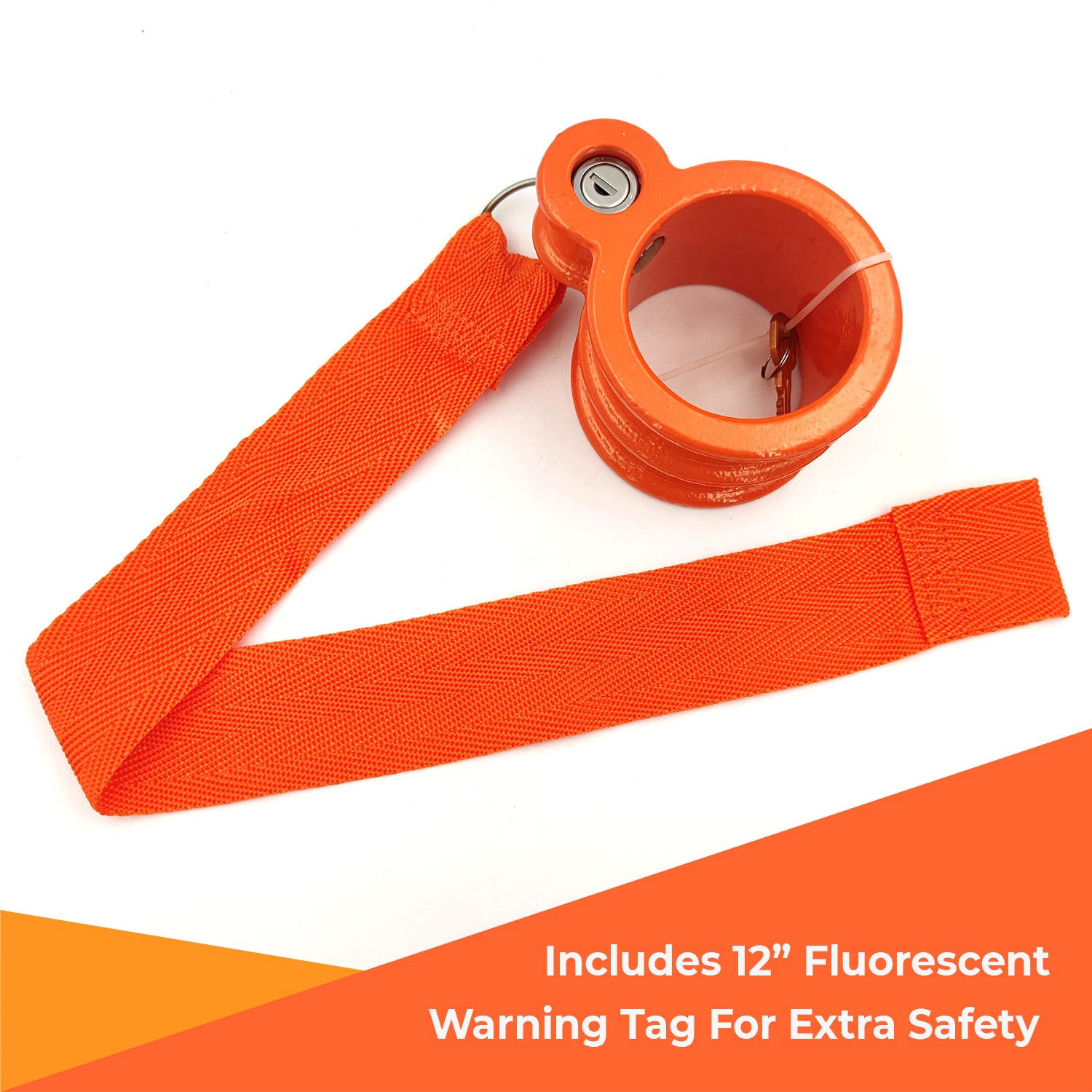 - INCLUDES FLUORESCENT TAG - Each lock includes a fluorescent warning tag for extra safety. The warning tag is an extra visual indicator to prevent accidental attempts to hook up to the trailer while the lock is engaged.
