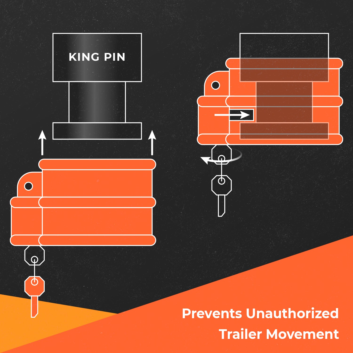- Prevents theft of trailers by preventing the king pin from mating with the 5th wheel