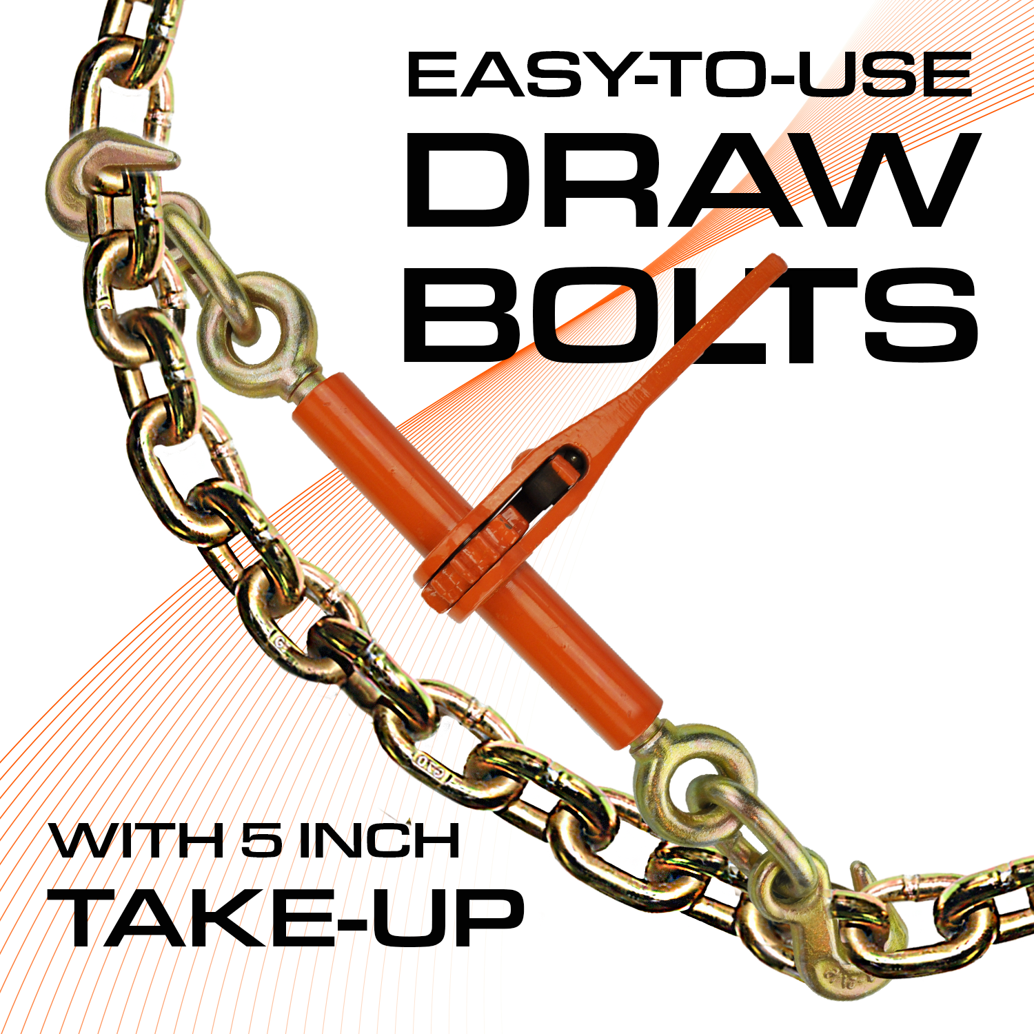 - INDUSTRIAL STRENGTH CONSTRUCTION - The heavy duty forged handle, barrel, take-up screws, links and hooks are intended to stand up to rigorous field use and harsh weather conditions. Baked on powder coating and zinc-dichromate plating provide maximum durability and reliability. The forged grab hooks swivel 360 degreesand engage easily with 1/4 or 5/16 Inch Grade 43 chain.