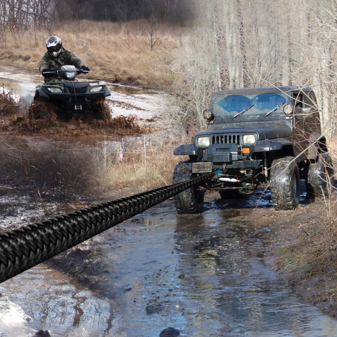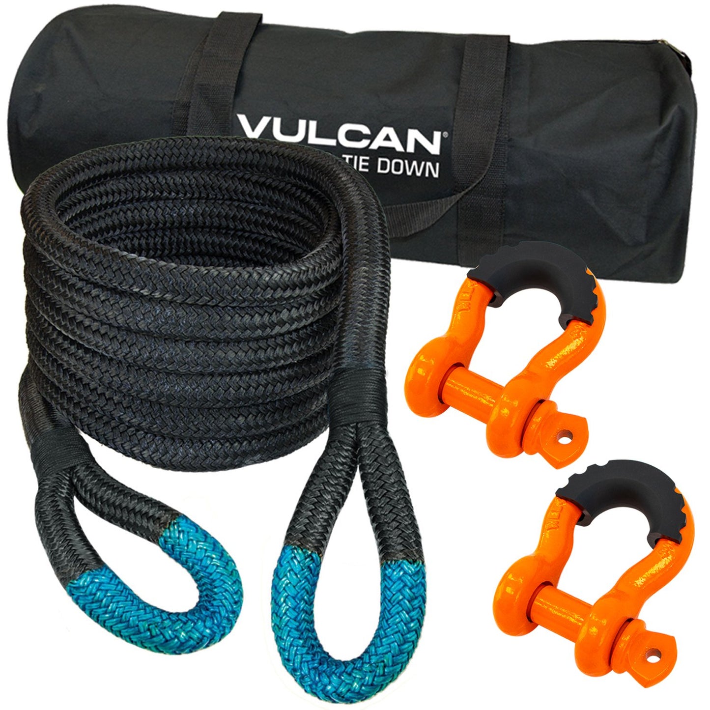 - HEAVY-DUTY CONSTRUCTION - VULCAN offers innovative products for car owners and enthusiasts. Our premium items are ideal for tying down larger vehicles. The Off-Road Recovery Rope is an example of our quick and high-quality road recovery solutions. These 7/8" x 20 foot ropes are made of premium quality materials that are guaranteed to last and perform well on all types of terrain, including mud, snow, and sand. Use this kit for your car, truck, SUV, ATV, UTV, or snowmobile.