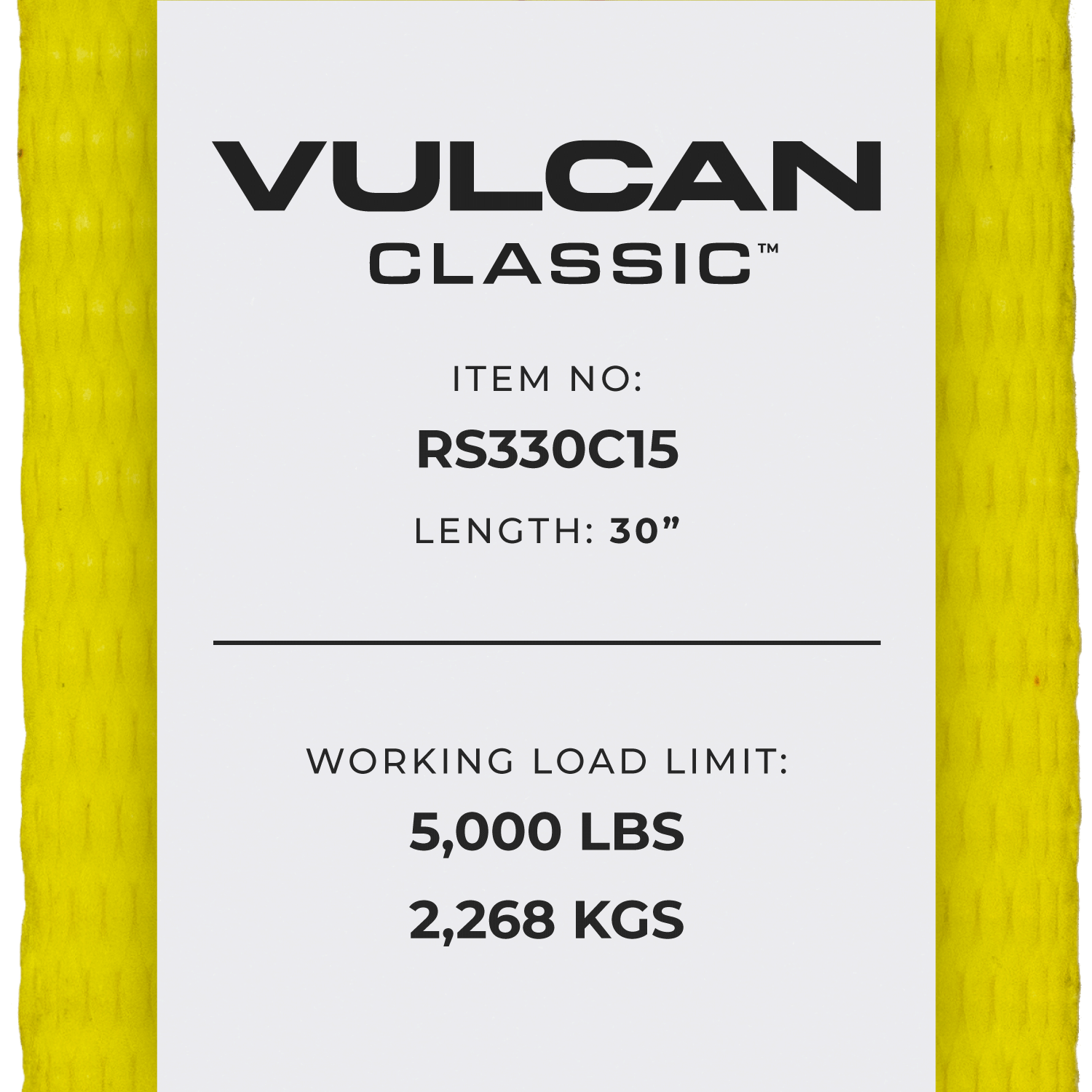 - SAFE AND COMPLIANT - This ratchet strap has a 5,000 pound Safe Working Load. All Vulcan cargo control products meet all CVSA and DOT specifications, and comply with NACM recommendations. You will be compliant for any roadside inspection, and you can work with confidence using Vulcan products - a name you can trust.