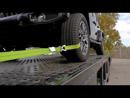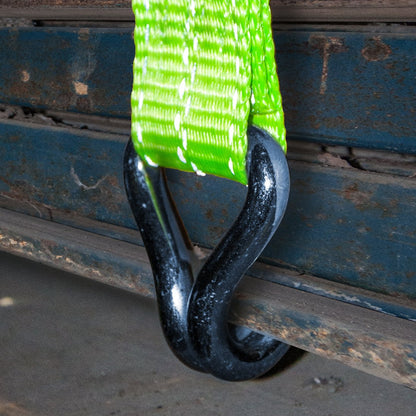 - UNIQUE HIGH-VIZ WEBBING - Flexible 1-ply 2 inch wide ultra-bright neon green straps are extremely visible in daytime light conditions, and the special retro-reflective fibers shine brightly at night for extra visibility in low light conditions. This extra thick tie down webbing has excellent durability and long service life.