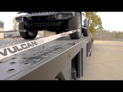 - PROFESSIONAL GRADE TIE DOWNS - Professional truck, trailer, and flat bed operators choose Vulcan cargo control systems to haul millions of loads every year. Vulcan is recognized as the most qualified, most experienced, cargo tie down manufacturer in the world. Work with confidence, knowing that this heavy duty ratchet strap is backed by the 50 years of manufacturing expertise that only Vulcan can provide.