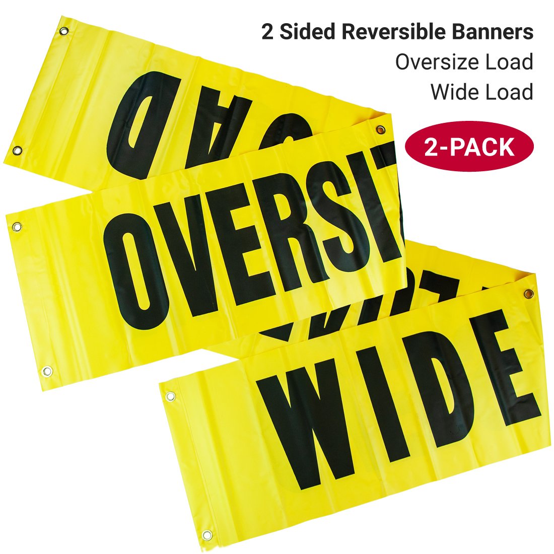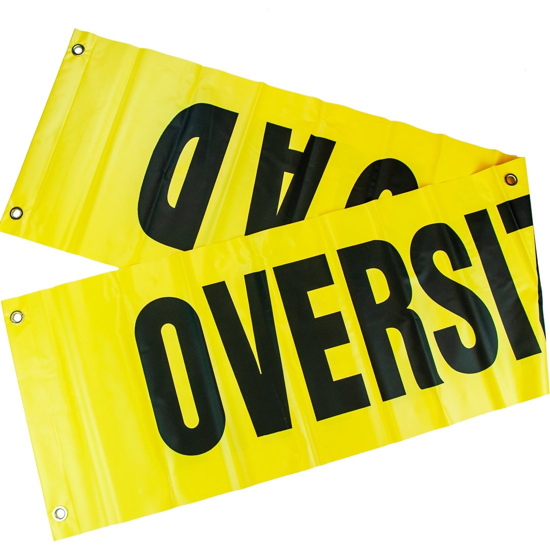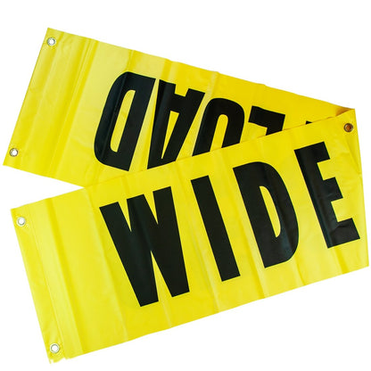 - SAFE AND COMPLIANT - The banner features large black 2 inch x 12 inch OVERSIZE LOAD and WIDE LOAD letters comply with DOT specifications and are easily seen against the bright yellow nylon background.
