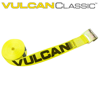 - PROFESSIONAL GRADE TIE DOWNS - Professional truck, trailer, and flat bed operators choose Vulcan cargo control systems to haul millions of loads every year. Vulcan is recognized as the most qualified, most experienced, cargo tie down manufacturer in the world. Work with confidence, knowing that this heavy duty winch strap is backed by the 50 years of manufacturing expertise that only Vulcan can provide.